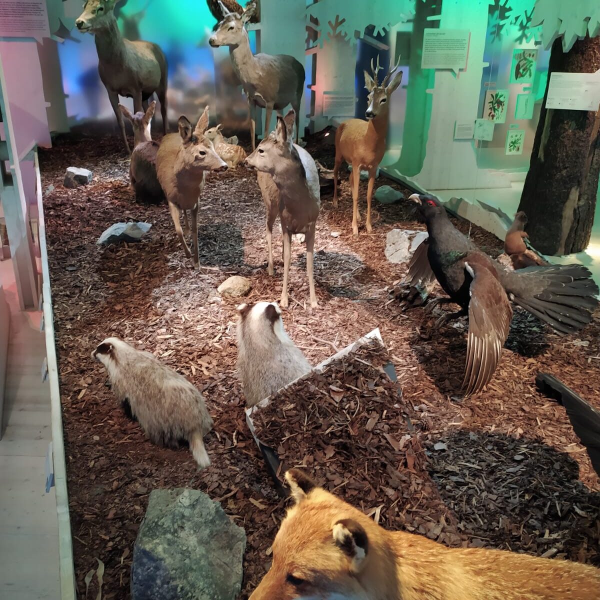 Passando poi nella parte dedicata alla foresta, è possibile ammirare numerose figure di alberi, su cui sono proiettate immagini in movimento del fogliame, il quale cambia di stagione in stagione. Tutt’attorno vi sono animali imbalsamati, tra cui cervi, caprioli, scoiattoli, daini e conigli selvatici, ciascuno con a fianco un pannello di legno con la descrizione dell’animale e del suo habitat. L’atmosfera del luogo, così come quella di tutte le altre sale, è caratterizzata da altoparlanti che emettono continuamente i suoni della natura del Parco Nazionale. E’ possibile sentire i suoni del fondale marino, i suoni del bosco di montagna, fino a quelli dei pascoli e dei picchi montani più alti.